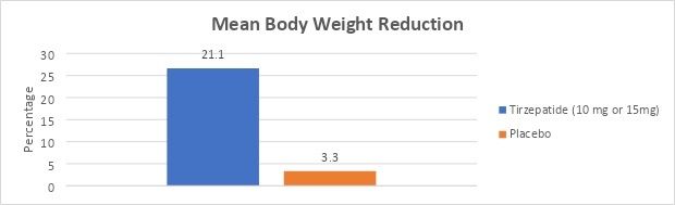 Surmount 3's clinical trial results are very comparable to their predecessors. During the 12-week lead-in period of lifestyle modifications, 579 (71.8%) participants lost ≥5% of their weight. They were qualified for the next step, which is the treatment of tirzepatide (10 mg or 15 mg) or placebo for the next 72 weeks. At the start of the study, the mean body weight was 241.4 lb. (109.5 kg). At the end of the 12-week lead-in period, participants achieved 6.9% (7.6 kg or 16.8 lb.) mean weight loss. In a co-primary endpoint, tirzepatide-taking participants lost an extra 21.1% mean weight after the lead-in period.